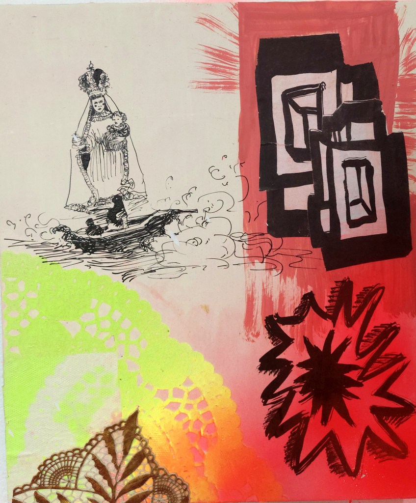 María Ciclotrónica acrílico, tinta, esmalte y blondas sobre panel enyesado 30x25cm 2022Colección particular Compártelo: Share on X (Opens in new window) X Share on Facebook (Opens in new window) Facebook Like Loading...